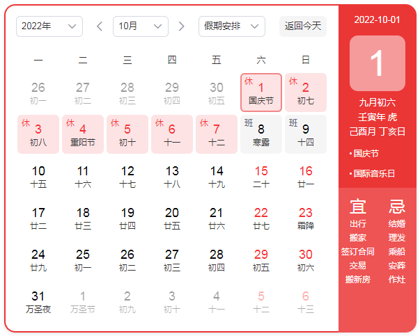 2022年10月1日-2022年10月7日 共計(jì)7天