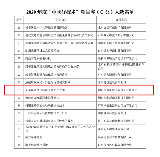 在全國各級生產(chǎn)力促進(jìn)中心和相關(guān)機構(gòu)的大力支持的2020年度“中國好技術(shù)”征集活動中,華順天車軌道油氣潤滑技術(shù)榮獲“中國好技術(shù)”稱號。